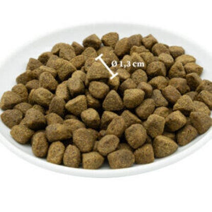 MaxiDog Sensiv è un alimento completo e 100% naturale (NO OGM), fatto con materie prime di alta qualità prodotte in Germania – Pressato a freddo per preservare tutti i nutrienti naturali al suo interno. Le crocchette vengono insacchettate e spedite – dal sito di produzione – direttamente a casa tua, per avere la massima freschezza. Non contiene nessun additivo artificiale, aromi o appetizzanti chimici, conservanti ne zuccheri aggiunti.